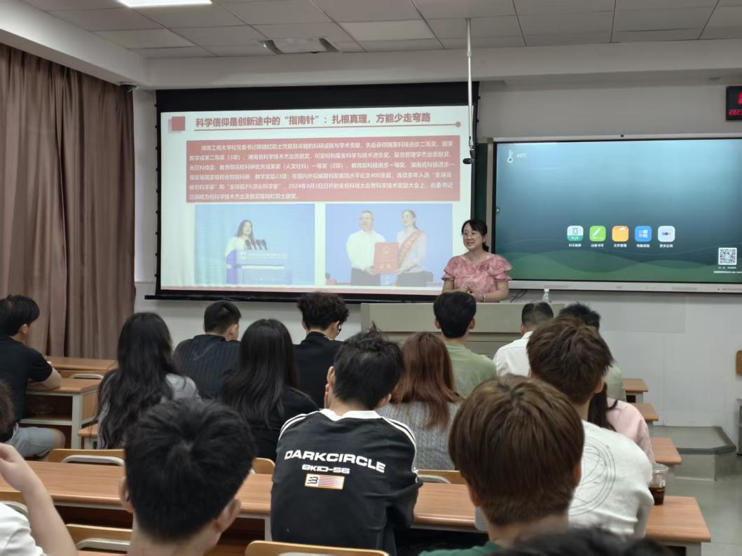 学院党委书记曾晶为2025级研究生讲授开学第一课,曾书记结合湖工商与时代同频、与国家同向、与学子同行的校史,微电子与物理学院产学研育“芯”人才的院情,勉励新生以理想信念、科学信仰、家国情怀为支撑,在科研上“三个下功夫”,将个人学术追求融入国家科技自立自强大局。