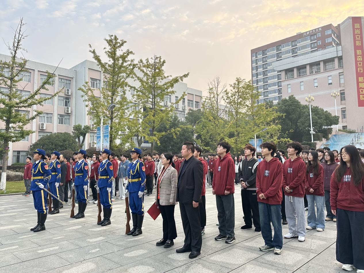 2025年10月27日清晨,湖南工商大学微电子与物理学院在校园内隆重举行“铭记英雄志,奋进新征程”主题升旗仪式。学院党委书记曾晶、执行院长侯海良、党委副书记徐旭、辅导员及23级全体同学共同参加。