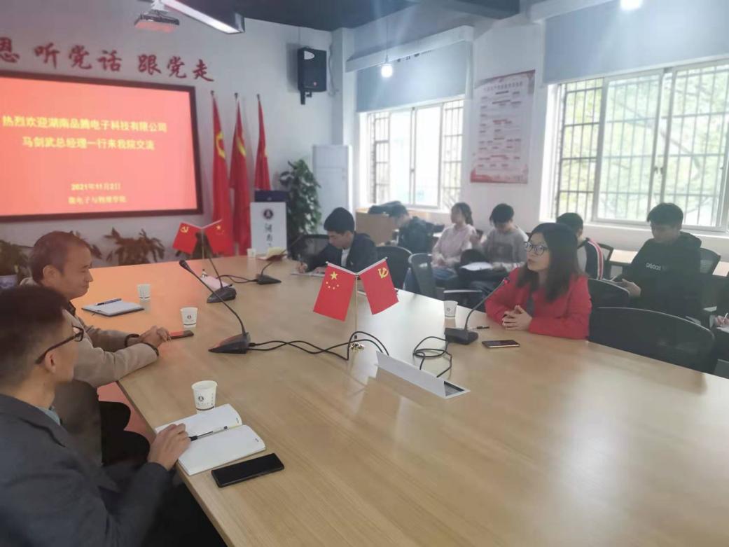 2021年11月2日下午,湖南品腾电子科技有限公司总经理马剑武、李春江博士、李双飞经理一行3人来我院进行交流座谈,学院全体老师、微电子系2019级、2020级学生参加了交流座谈。